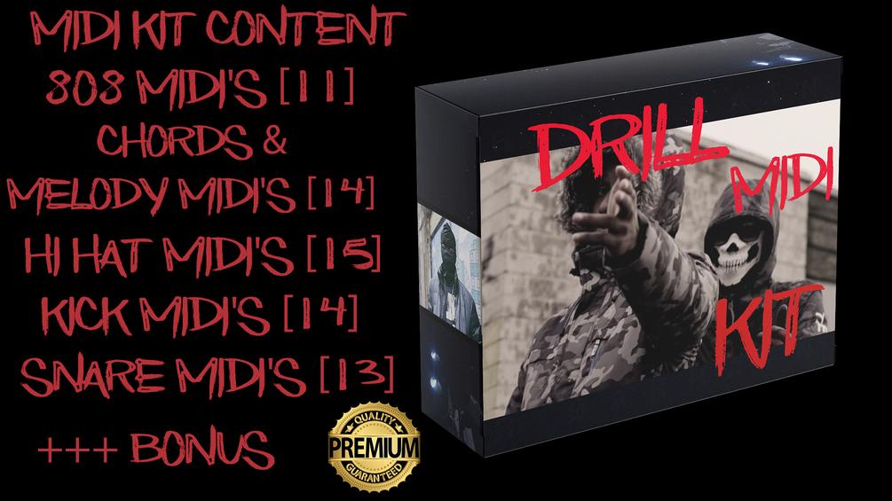 This is a high quality drill midi kit. Contains 808 Midi's, Chord & Melody Midi's, Kick Midi's, Hi Hat Midi's, Snare Midi's, and a Drill Fruity Loops Project.